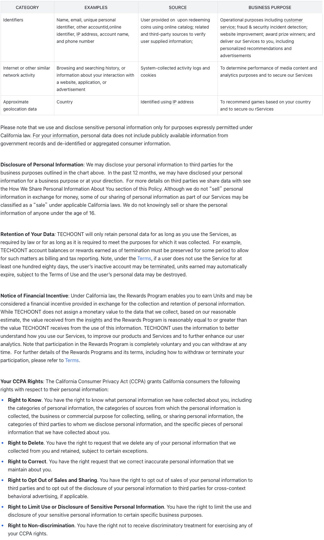 This section applies to the personal information of residents of California and supplements the other sections of TECHOONT’s Global Privacy Policy, which continue to apply